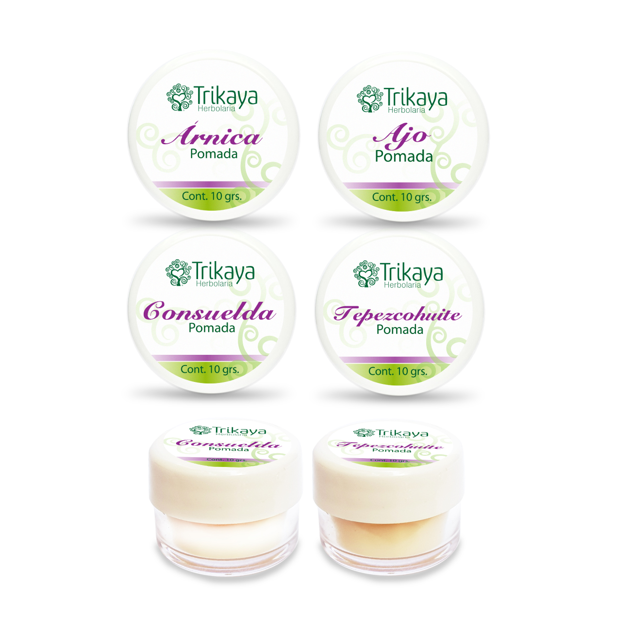 Pomada de Árnica: Excelente para tratar moretones de la piel en caso de golpes, dolor y desinflamación muscular.